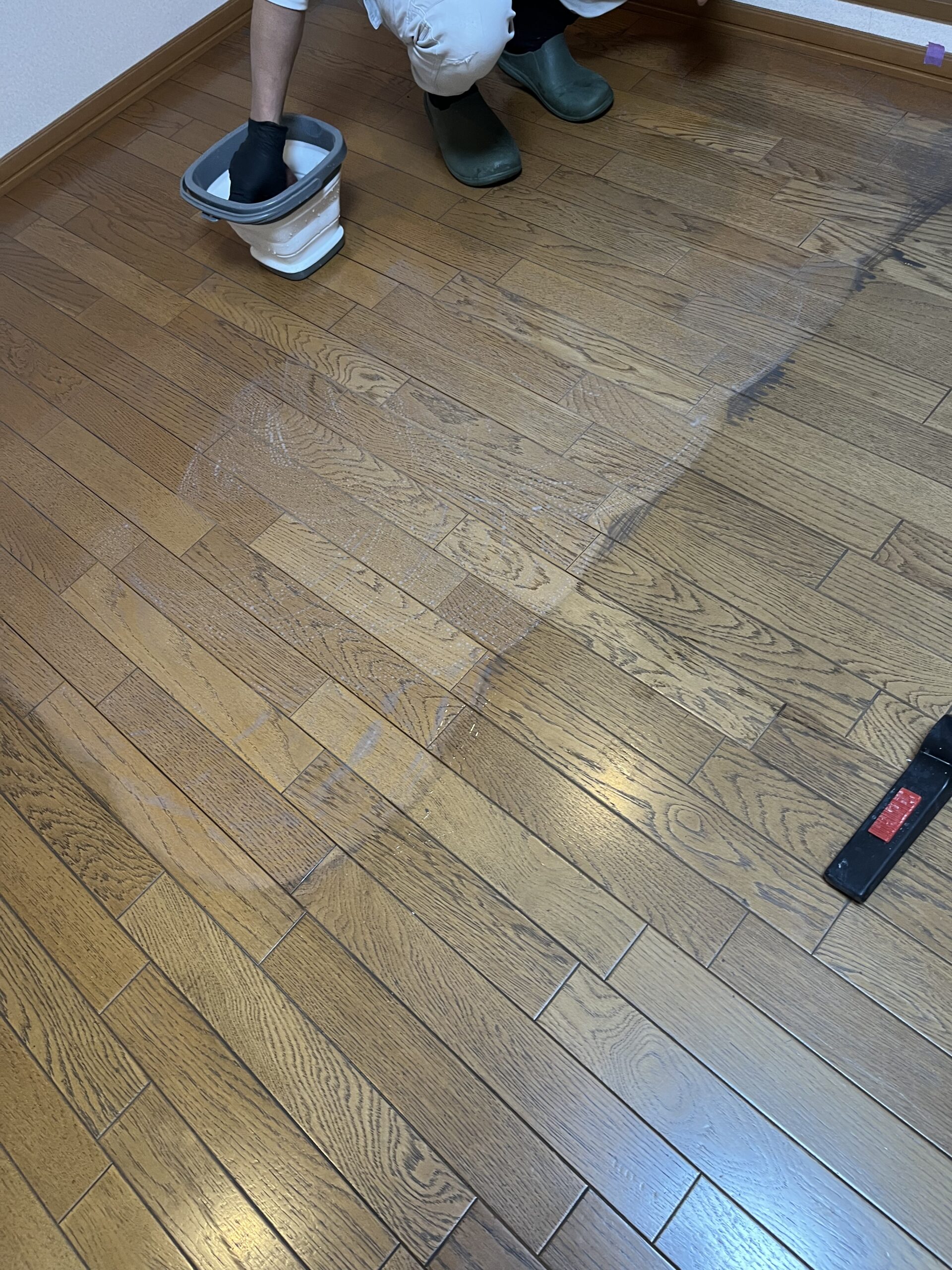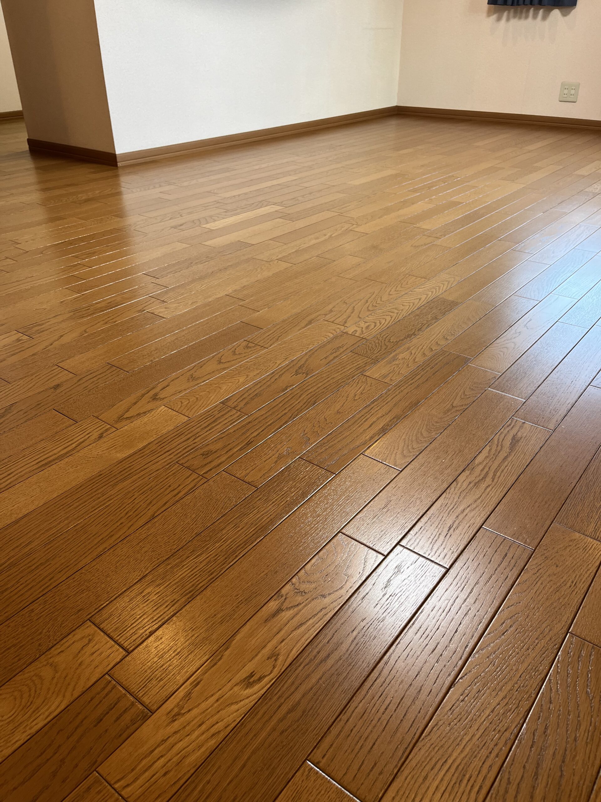 本日は、築25年の汚れが溜まったフローリングに半艶コーティングを施工させていただきました。